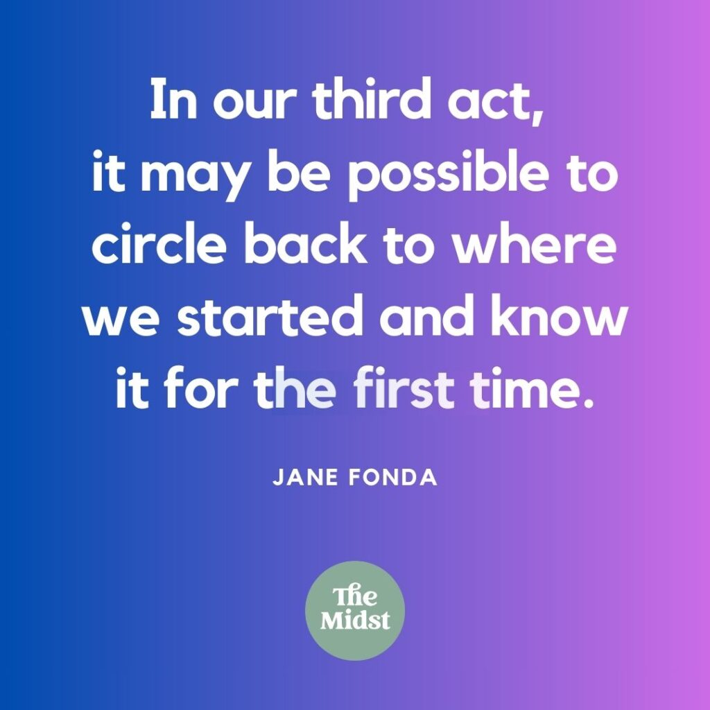 โIn our third act, it may be possible to circle back to where we started and know it for the first time.โ โJane Fondaย