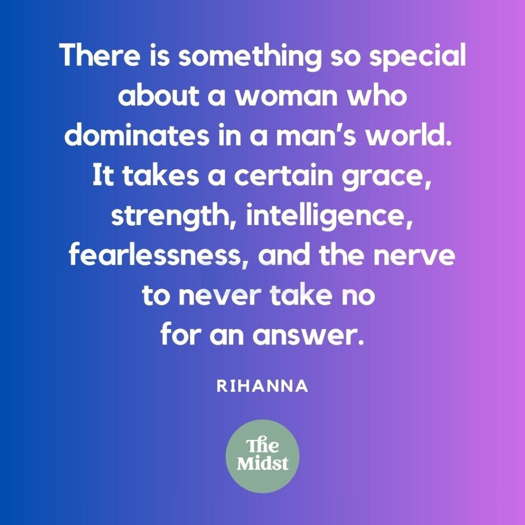 โThere is something so special about a woman who dominates in a manโs world. It takes a certain grace, strength, intelligence, fearlessness, and the nerve to never take no for an answer.โ โRihanna