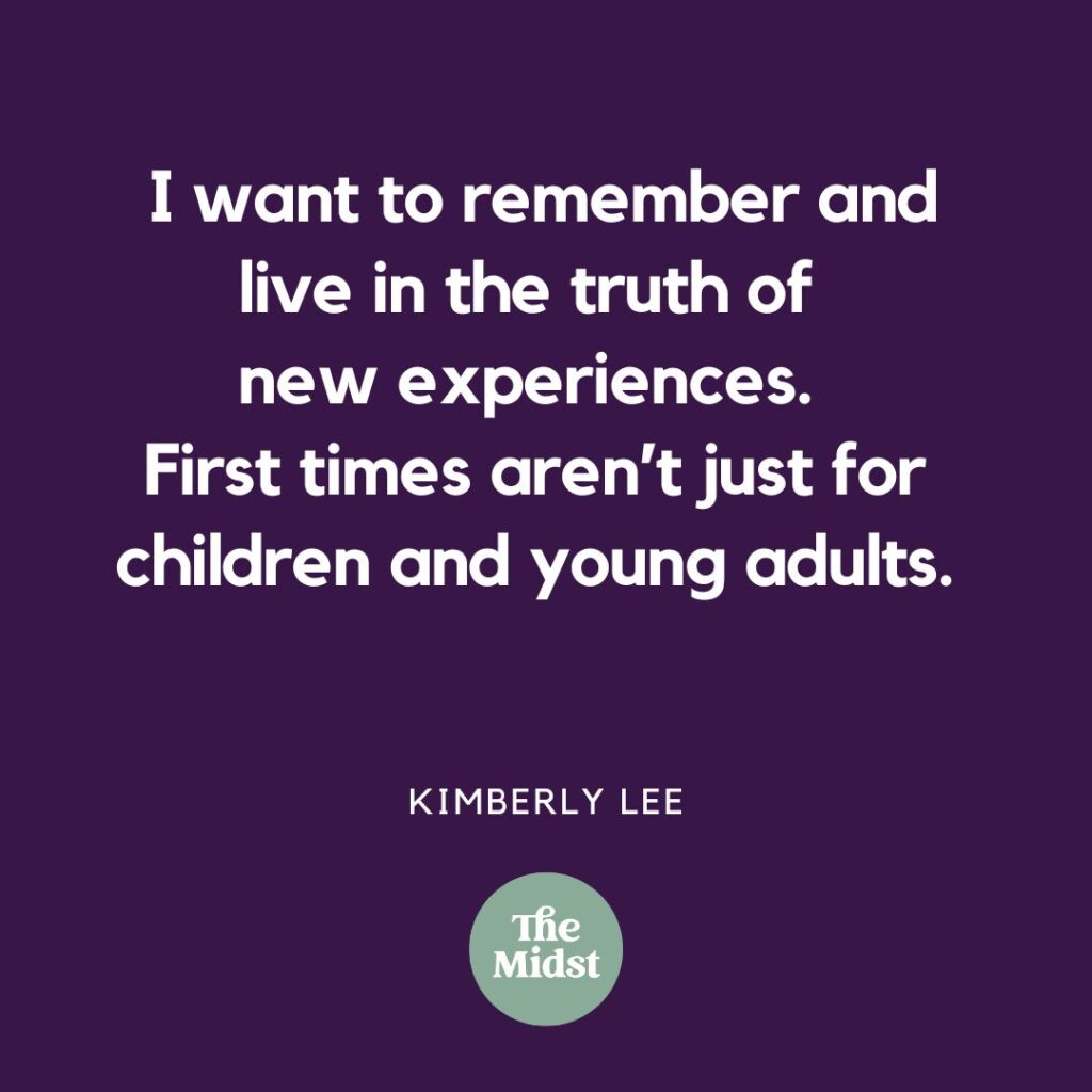I want to remember and live in the truth of new experiences — “first times” — aren’t just for children and young adults. Some firsts for me this year: first time as a guest on a podcast, first time to Europe, first book published.